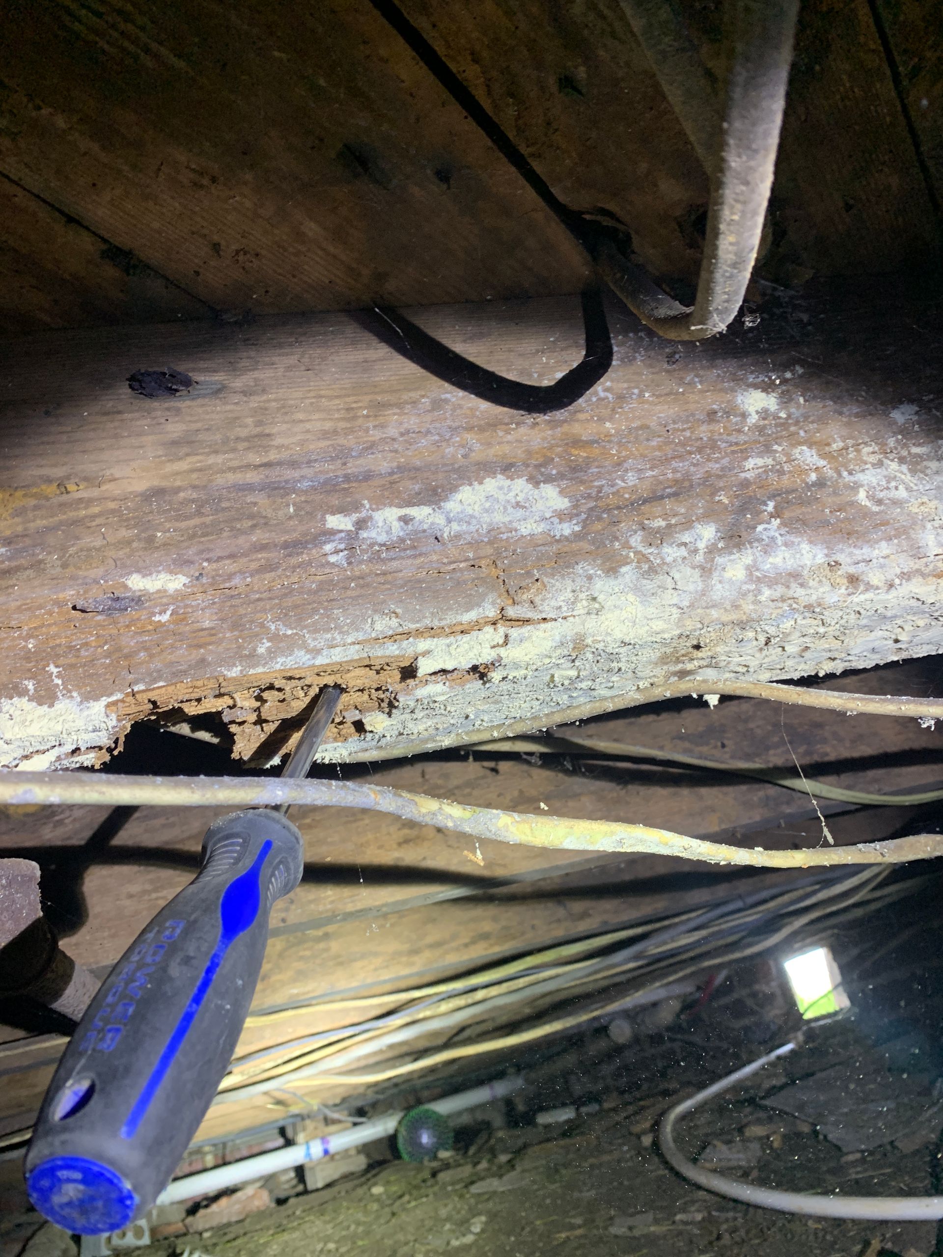 When wood rot and/or fungal growth is present this is typically the result of excessive moisture content throughout the crawlspace. This can greatly reduce the strenght of the floor system over time and also attract wood destroying insects.